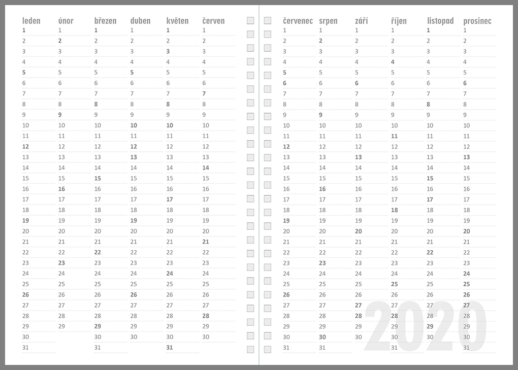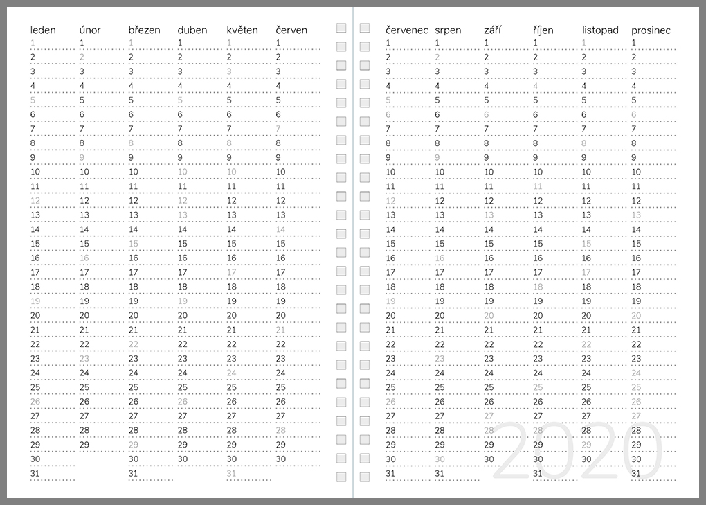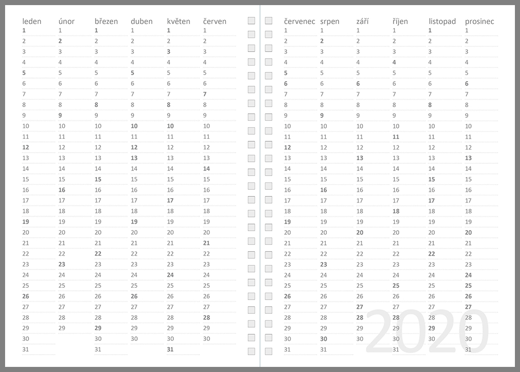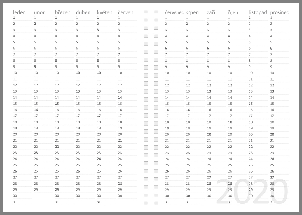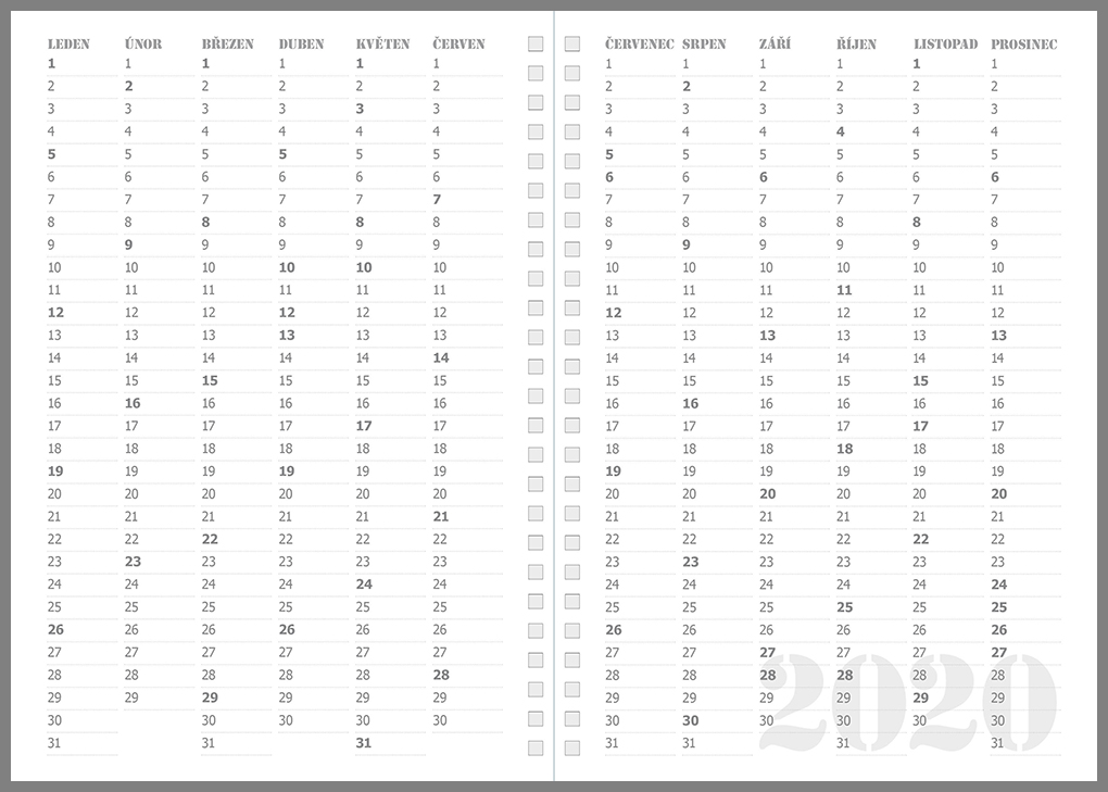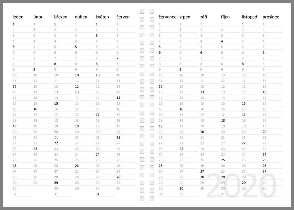 Nabízím také možnost vložit do kalendária vaše vlastní poznámky ještě před tiskem a ušetřit vám tak spoustu času jejich přepisováním ručně. Hodí se tak pro záznam různých výročí, předem daných termínů nebo třeba informací o školním / akademickém harmonogramu roku.