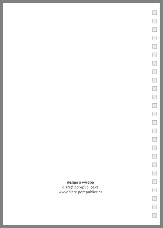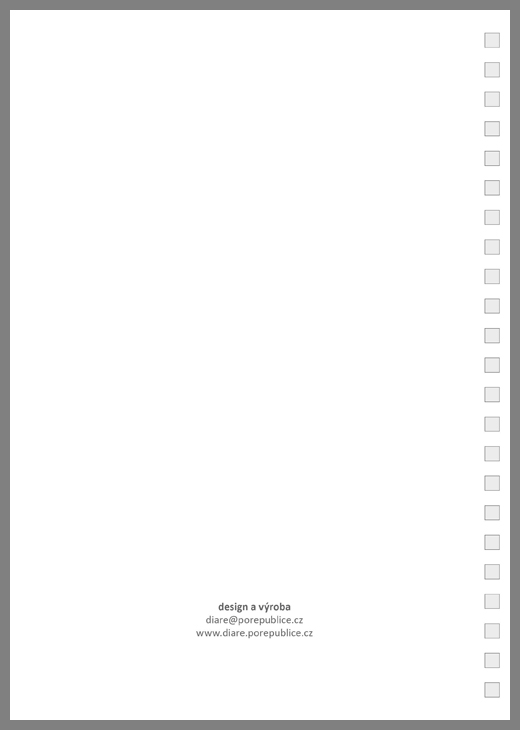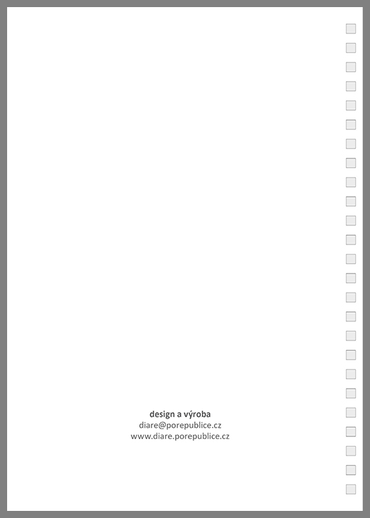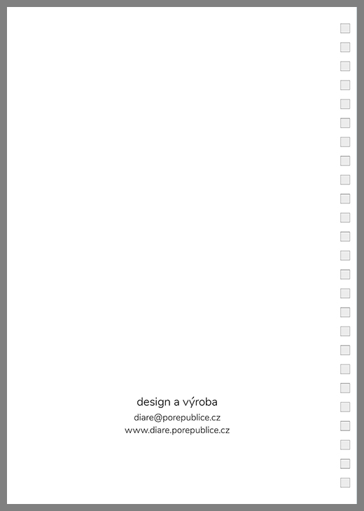 Pokud byste z nějakého důvodu chtěli cokoliv v diáři změnit (použitý font, změnit jazyk, svátky, jeho celkový formát atd.) stačí napsat a domluvíme se :)