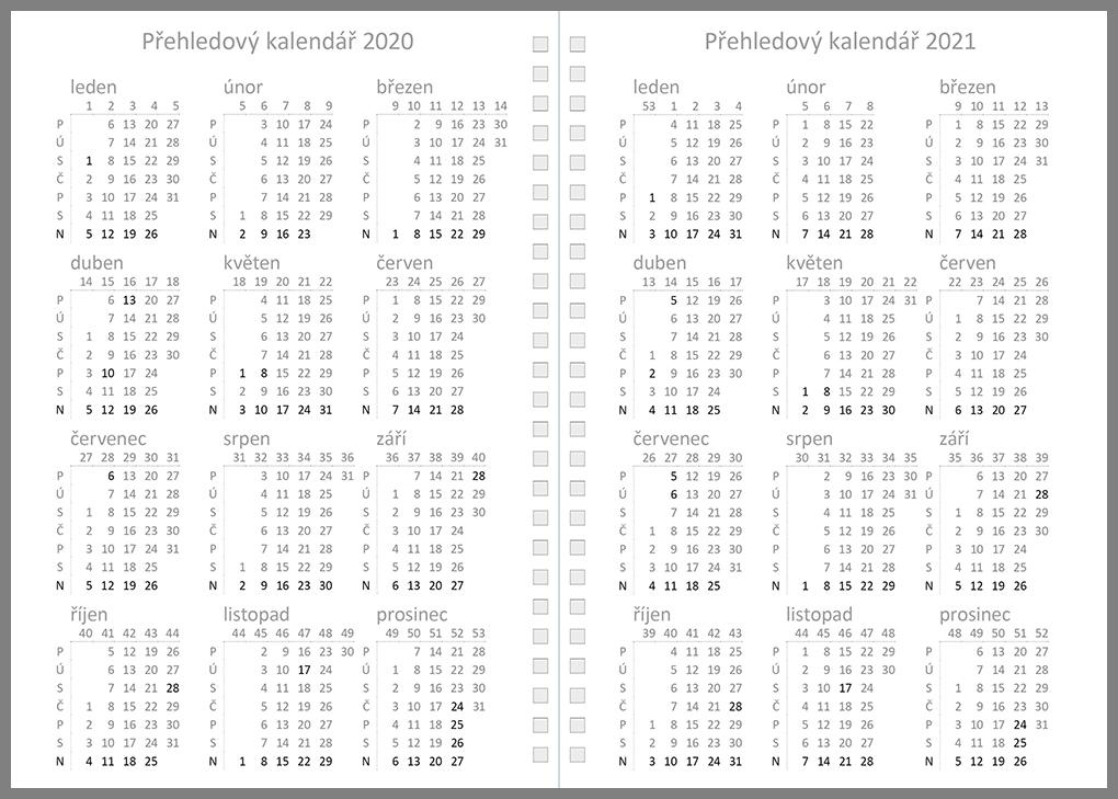| číslo týdne | ✓ | ✓ | ✓ | ✓ | ✓ | ✓ | ✓ | ✓ |