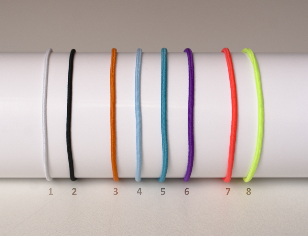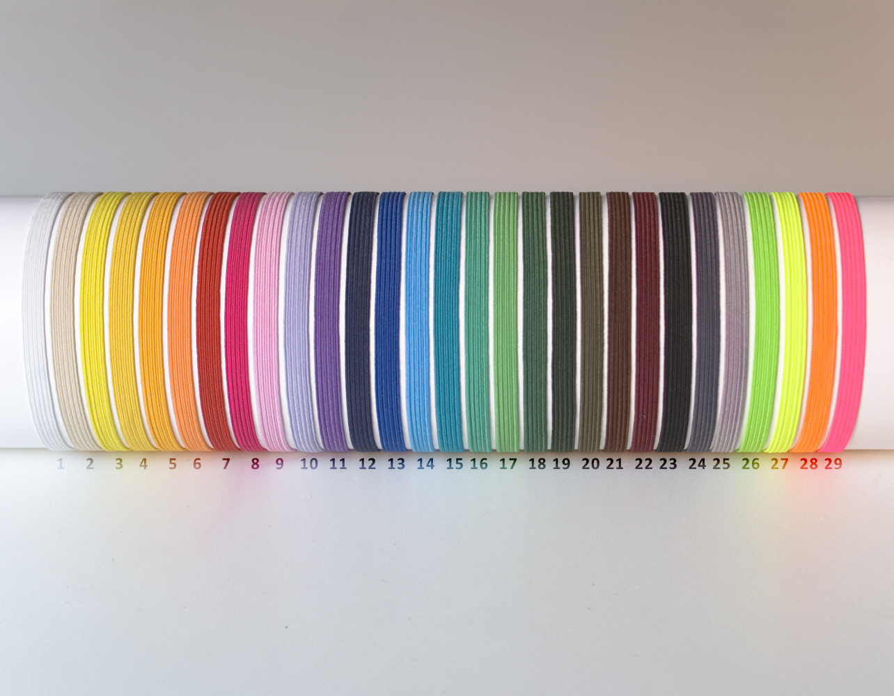 Ploché gumy mám vzhledem k jejich popularitě k dispozici ve větším množství barev než gumy kulaté. Kulatou gumu mohu po domluvě zkusit sehnat i v dalších odstínech, ploché gumy už se v dalších barvách bohužel nevyrábí. Prosím, číslo svého favorita si najděte ve vzorníku níže.