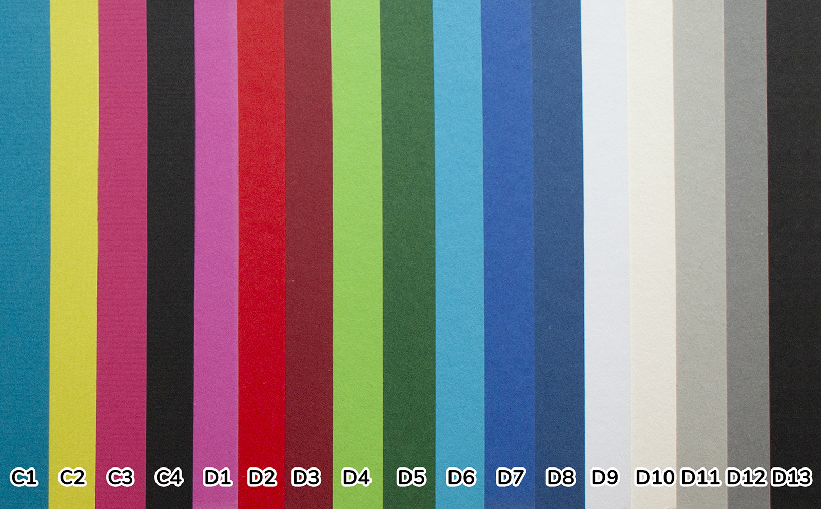 Dostupné barvy lepených kapitálků: bílá (1), černá (2), červená (3), oranžová (4), žlutá (5), krémová/béžová/přírodní (6), světlá hnědá (7), khaki zelená (8), tmavá zelená (9), jasná zelená (10), tmavě modrá (11), tmavě modrá s bílými flíčky (12)